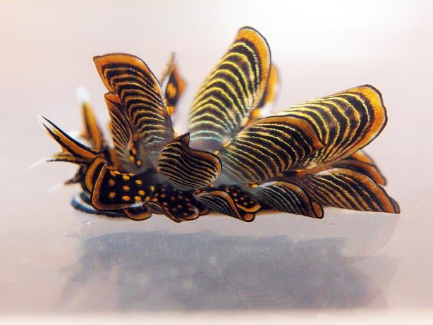ORDER: SACOGLOSSA FAMILY: Caliphyllidae black orange yellow spots lines |