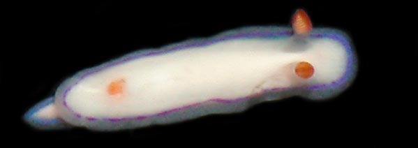 Order: NUDIBRANCHIA Family: Chromodorididae white purple edge orange rhinophores |