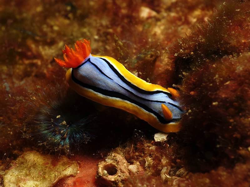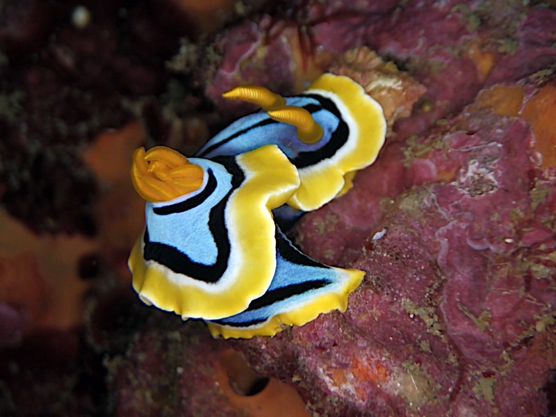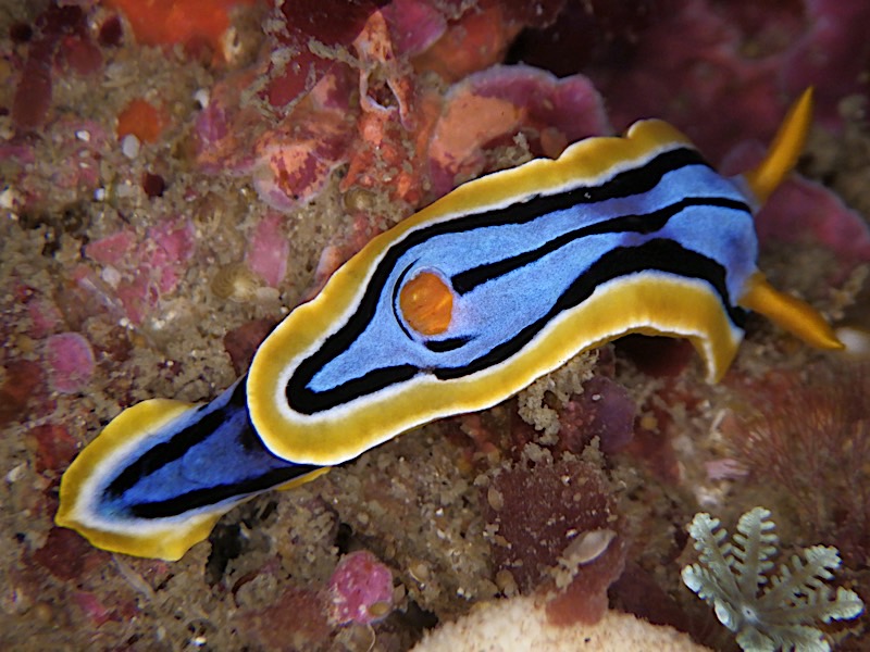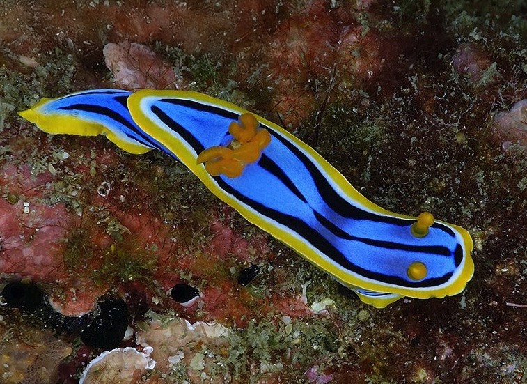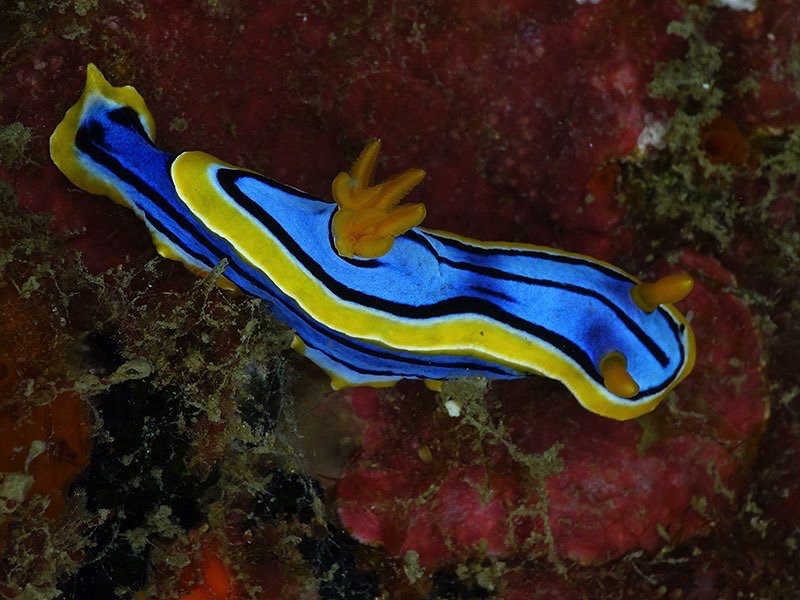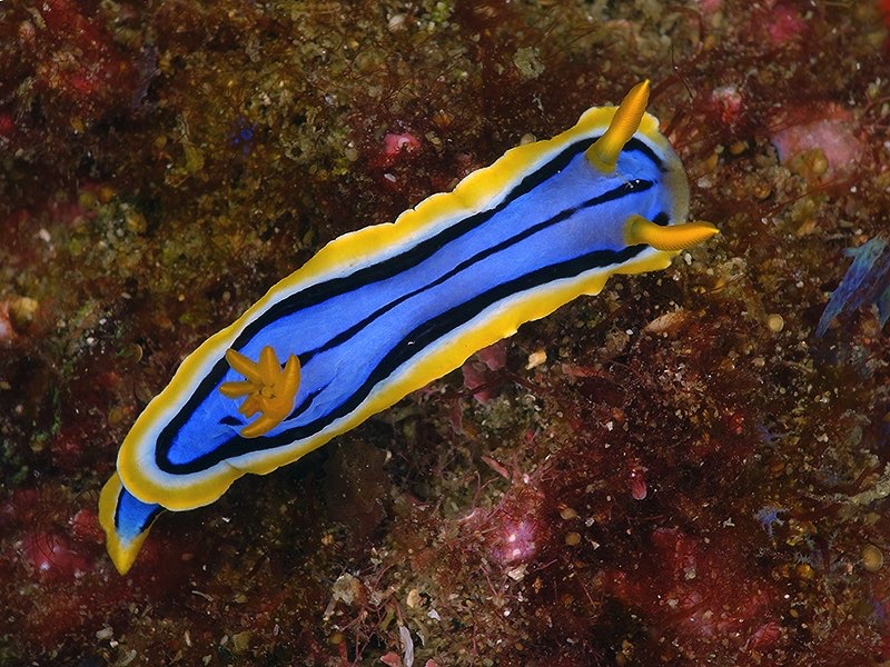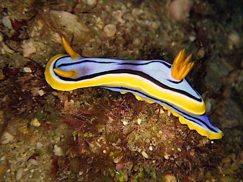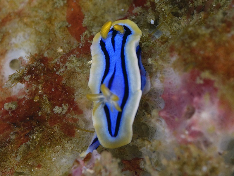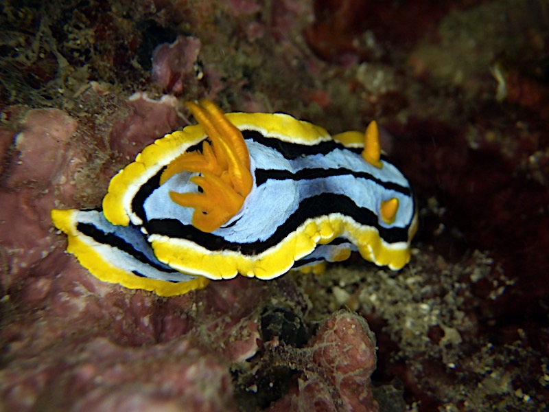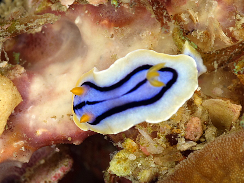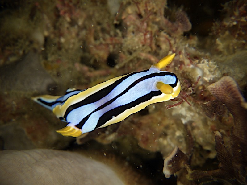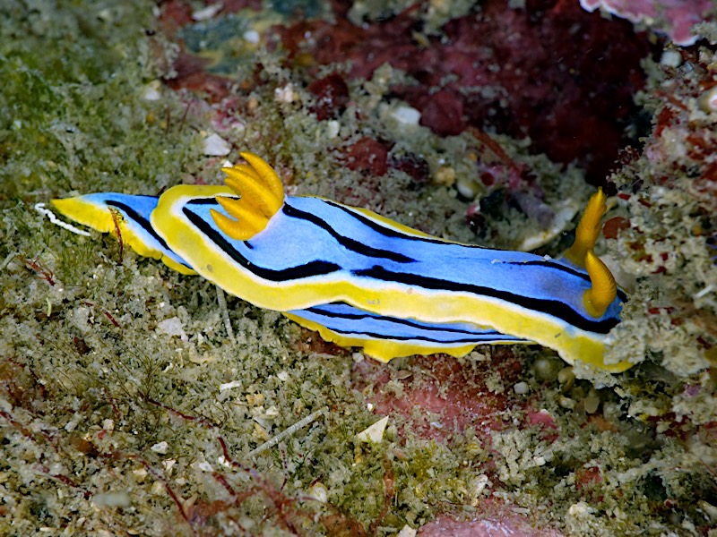 ORDER: NUDIBRANCHIA FAMILY: Chromodorididae blue yellow black lines |