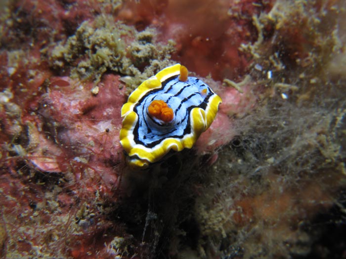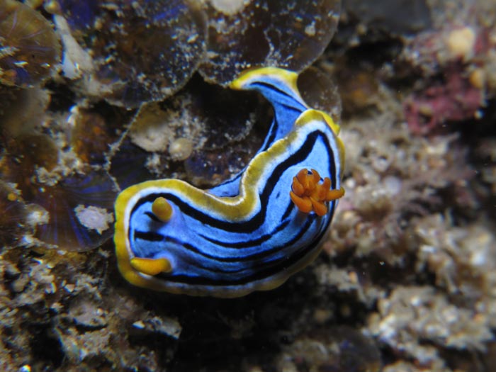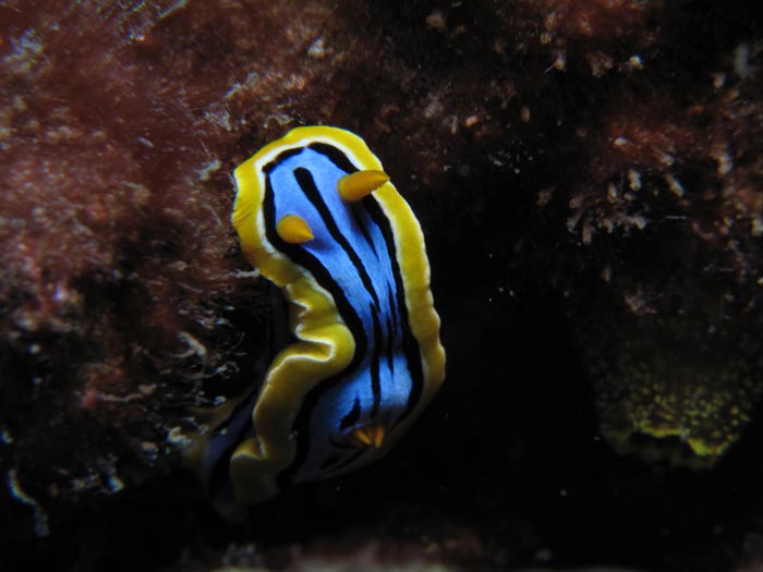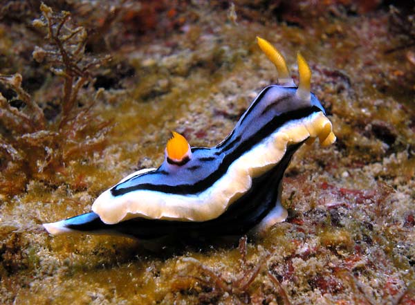 ORDER: NUDIBRANCHIA FAMILY: Chromodorididae blue yellow black lines |