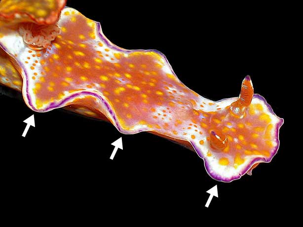 are the 3 lobes on the sides of the animal. C. trilobatum has two, the center one is not there.