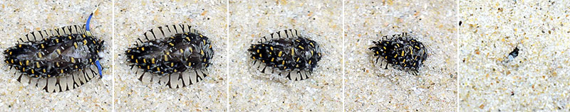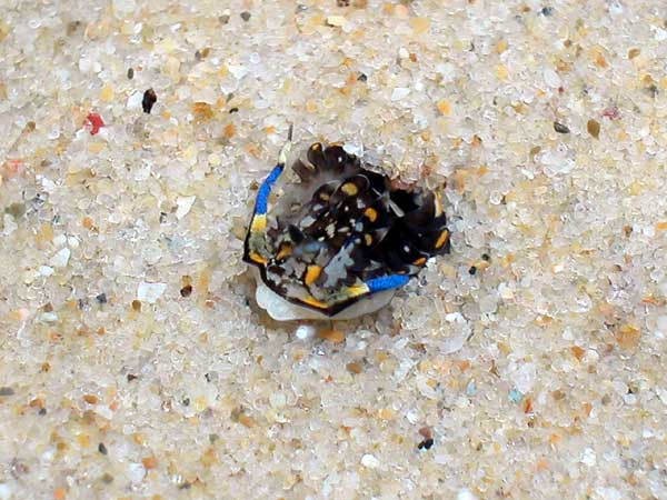 Cerberilla ambonensis burying itself in the sand