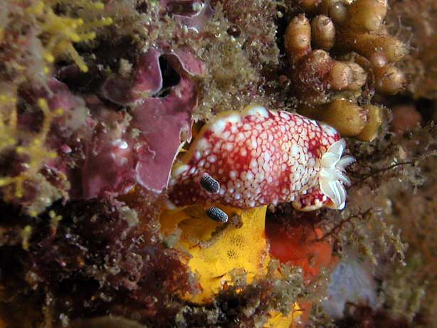 ORDER: NUDIBRANCHIA FAMILY: Chromodorididae red white yellow |