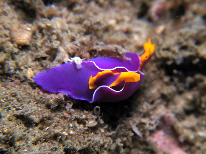 Above: Notice the Goniodoridella savignyi crawling over the tail.