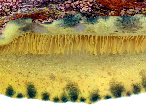Mantle raised to reveal gills and base of foot