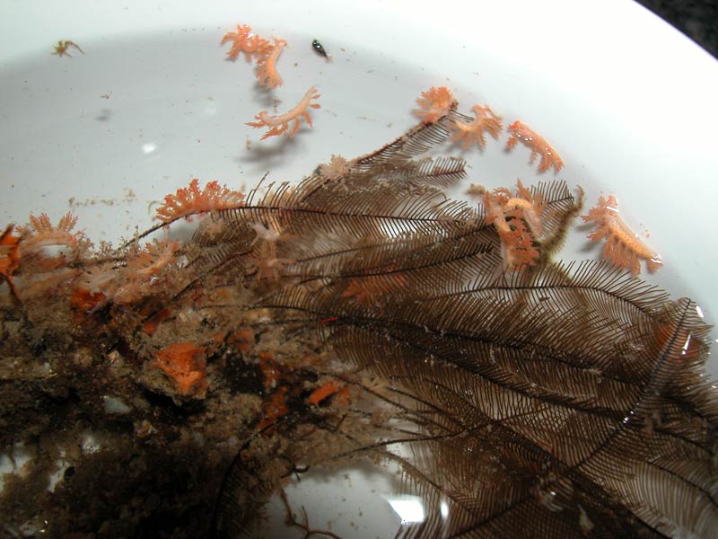 Hydroid clumps contain large colonies of animals...32 animals were found on one clump! On the dive you can not see the animals! You see the egg masses.