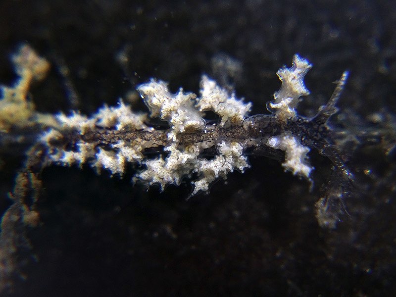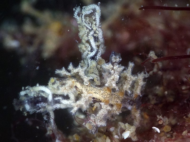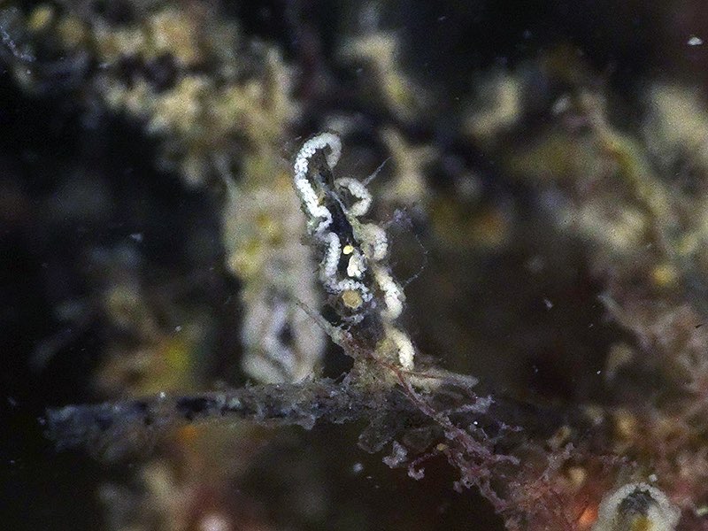 NOTE: This species is known for laying its eggs parallel to the stock of the hydroid instead of around.