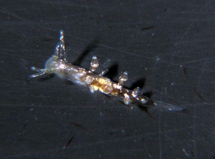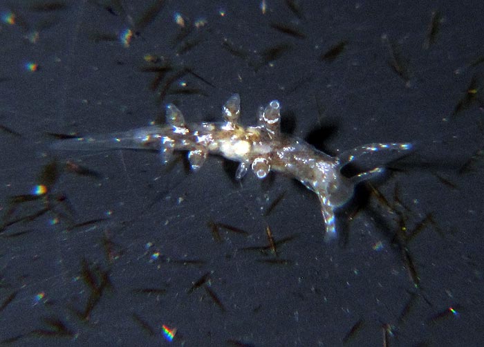 | Location: Floating pontoons at Mooloolaba Marina, Mooloolaba, Sunshine Coast, Australia Size: 2 mm Depth: .3 m Temperature: 24 C |