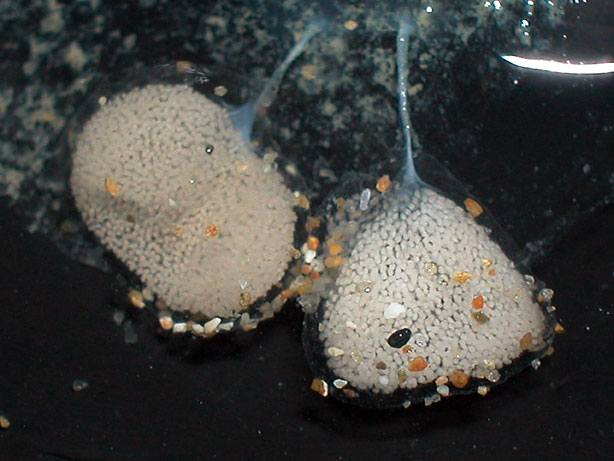 Stalked egg masses found attached to By-the-wind Sailor (Velella velella) on the beach